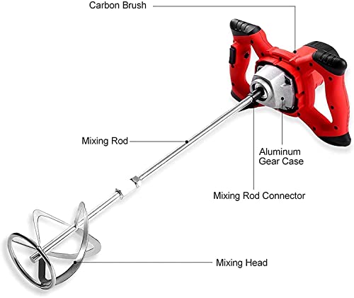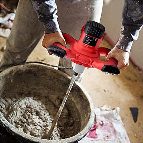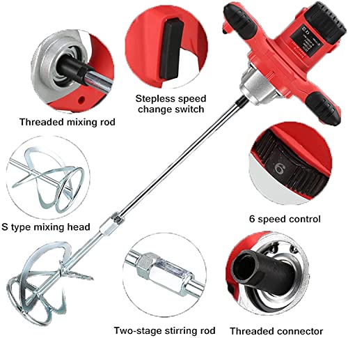 Specification: QPWZ 2100W Elektrische Handheld Paddle Paint Mixer, Draagbare Verstelbare 6 Speed Roerder voor Mortel Grouts Verf Beton Cement Gips Pleistervoeder, Industriële Boor Mengen Roergereedschap, Rood