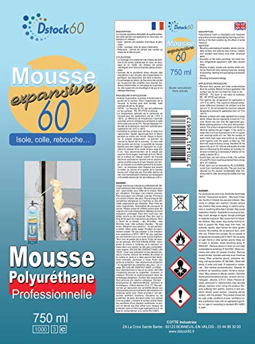 Specification: DSTOCK60 – 1 schuimreiniger + 1 spuitpistool + 1 reiniger – expanderend schuim 750 ml – professioneel polyurethaanschuim – isolerend, klevend en dof – buiten en binnen